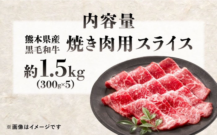 確かな品質の熊本県産「黒毛和牛」のスライスを焼き肉でご堪能ください! 熊本県産 『原田畜産』 黒毛和牛 焼き肉用 スライス 計約1.5kg(約300g×5パック)/ 熊本 牛肉 和牛 黒毛和牛 冷凍 焼肉 焼き肉 BBQ バーベキュー 合志市【有限会社 九州食肉産業】 [AYCN137]