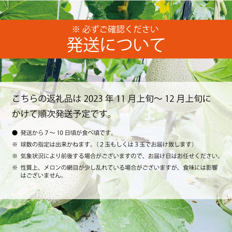 ※自然災害などの影響で発送が困難になった場合は、春収穫メロンまでお待ちいただく可能性があります。