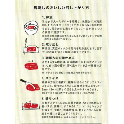 「くまもと食彩の力」馬刺しは鮮度さが特徴の一つです。