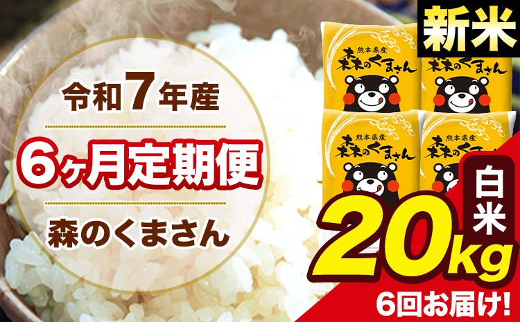 お米の定期便 新米 令和7年産 森のくまさん 白米 20kg 5kg×4袋 計6回お届け 《1月から出荷開始》 お米 こめ 熊本県産 ご飯 備蓄
