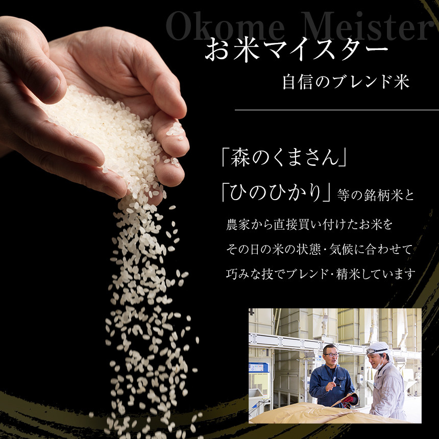 「森のくまさん」「ひのひかり」等の銘柄米と農家から直接買い付けたお米を匠の技で”ブレンドしたお米”です。
