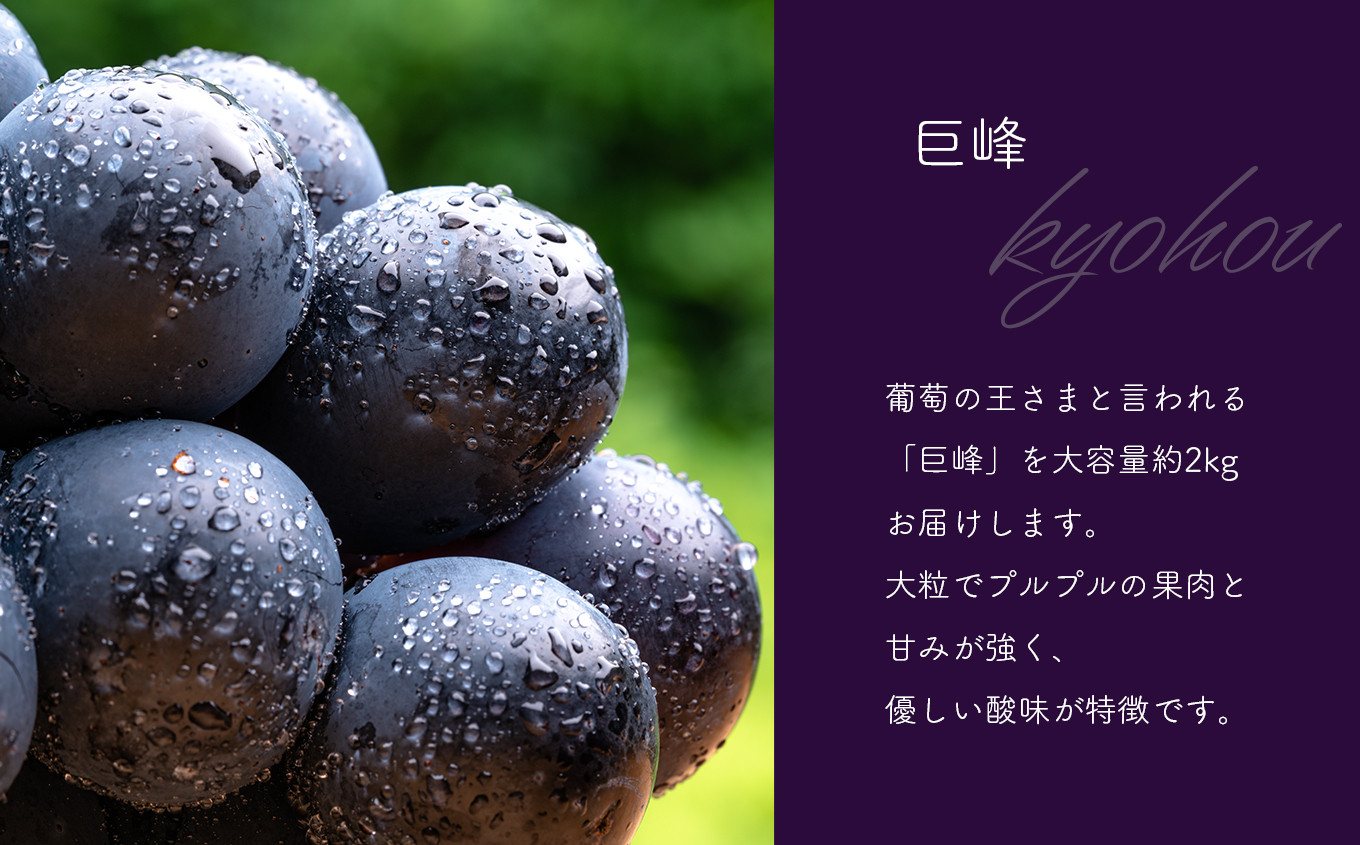 葡萄の王さまと言われる「巨峰」を約1.2kgお届けします。