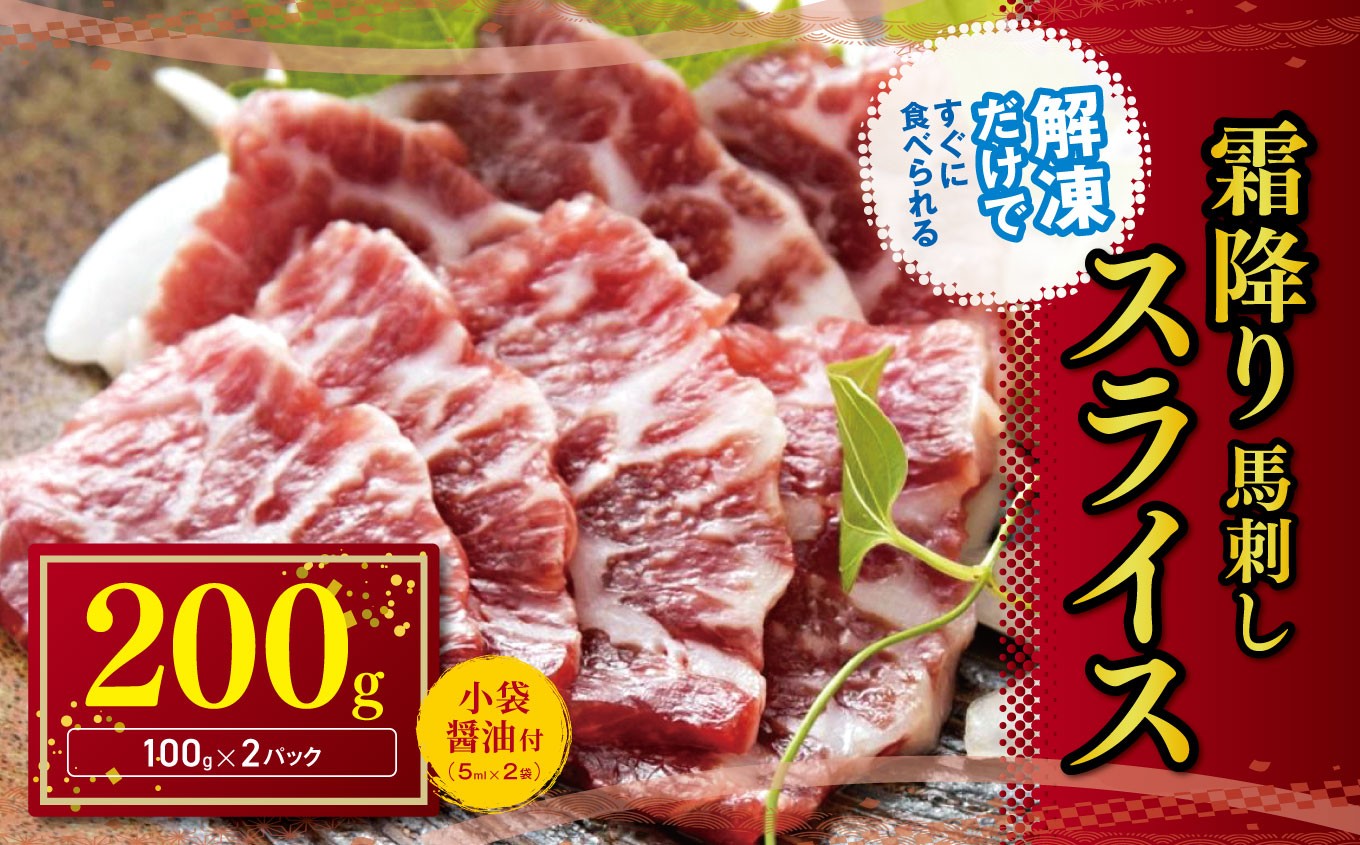 解凍だけですぐにお召し上がりいただけます 霜降り 馬刺し スライス 200g | 熊本県 熊本 くまもと 和水町 なごみ 馬肉 馬刺し 霜降り 200g 冷凍