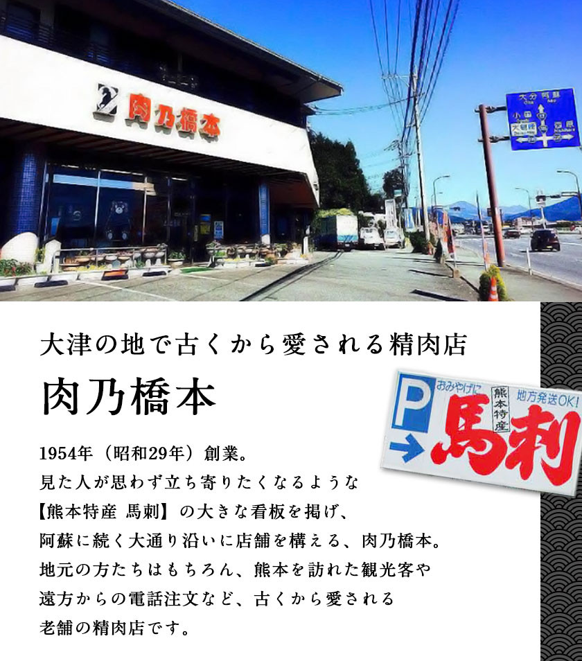 地場産品基準 告示第5条第8ハ号に適合 適合理由:熊本県 認定地域資源:馬肉(県内と畜)