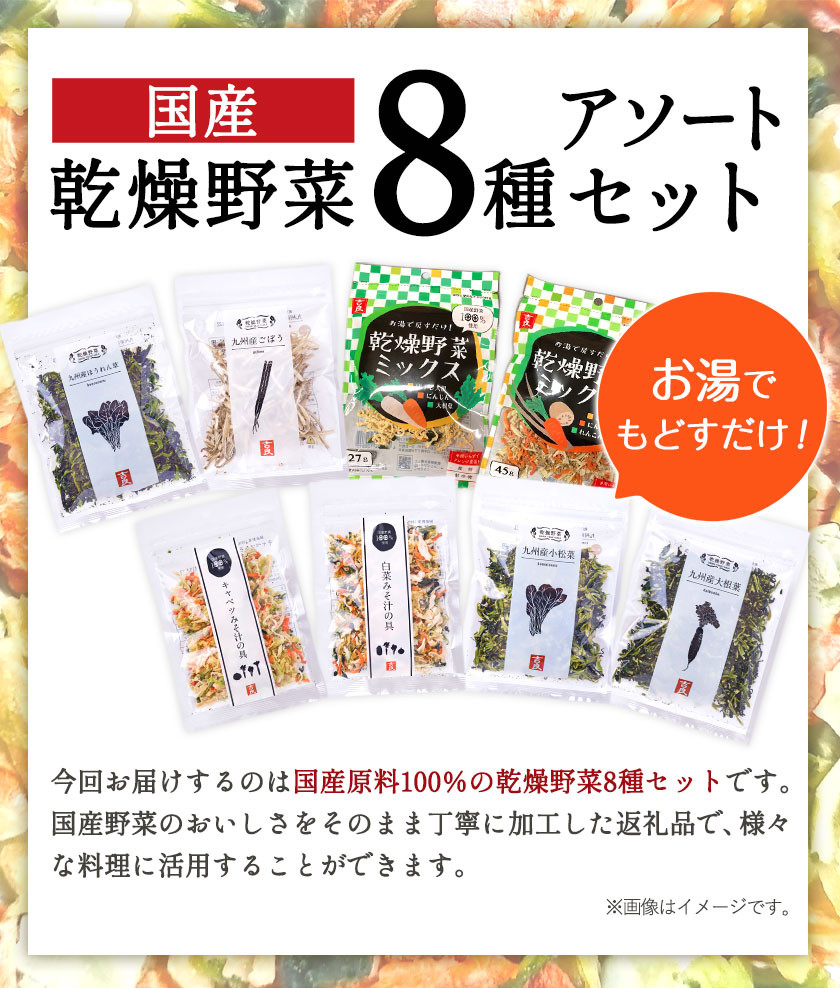 簡単!便利!おいしさそのまま 国産 乾燥野菜 8種アソートセット 吉良食品 《30日以内に出荷予定(土日祝除く)》 熊本県 大津町 野菜 乾燥野菜 味噌汁 みそ汁 炒め物 時短 簡単 便利