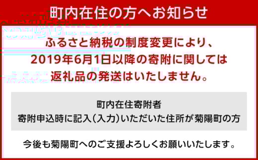 ・制度変更により、菊陽町在住の方の寄附に関しては返礼品の発送は致しません。