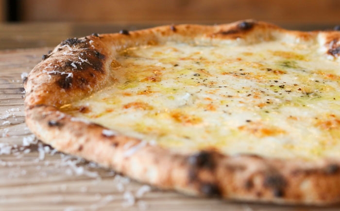クリーミーでコクのある「モッツァレラ」、豊かな風味の「パルミジャーノ」、独特の青カビの風味がアクセントの「ゴルゴンゾーラ」、そして燻製香が食欲をそそる「スカモルツァ」。それぞれのチーズが持つ塩味、旨味、香りが薪窯で焼き上げることで溶け合い、複雑で奥行きのある味わいを生み出します。