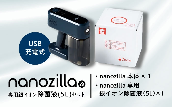 プロの現場で培われた技術をご家庭へ。 銀イオン×電動ミストで叶える新しい衛生習慣 nanozilla + 専用銀イオン除菌液(5L)セット / 衛生 銀イオン ペット 除菌 除菌作業 抗菌 ミスト 保育園 感染対策 無臭 消臭 雑貨 【株式会社 ピカッシュ】 [BHBA009]