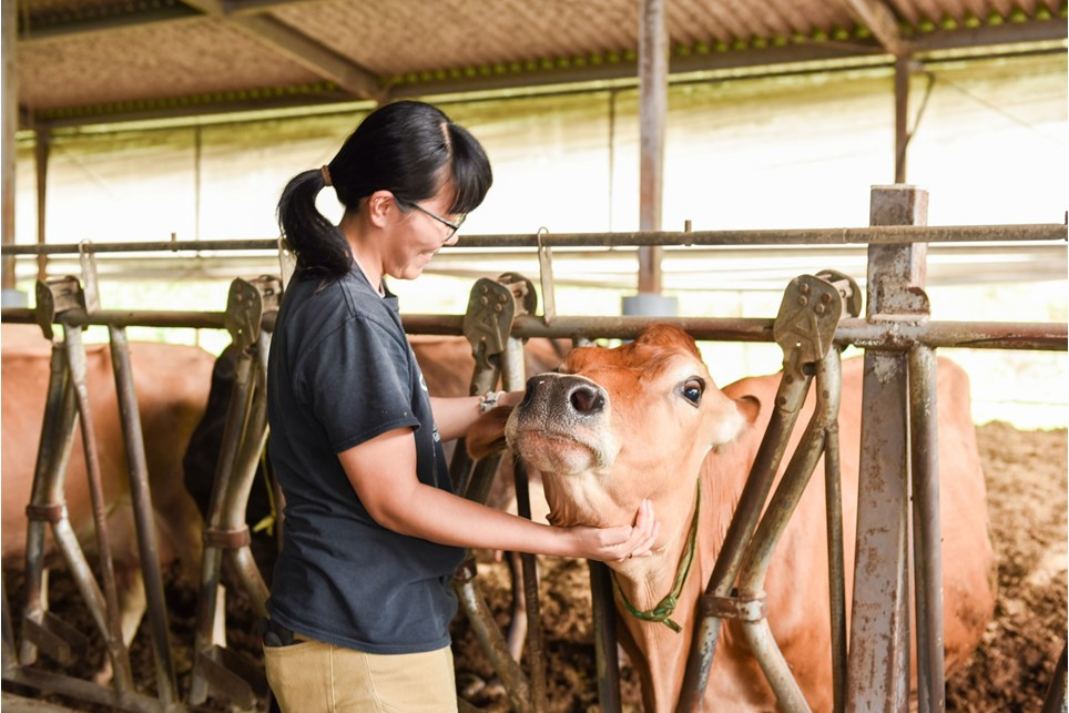 JA阿蘇小国郷管内では、現在13の牧場で約1000頭のジャージー牛が育てられています。牧場では、牛たちにストレスを与えにくい環境作りをおこなっており、質の高い牛乳を生み出す工夫がなされています。