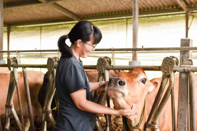 JA阿蘇小国郷管内では、現在13の牧場で約1000頭のジャージー牛が育てられています。牧場では、牛たちにストレスを与えにくい環境作りをおこなっており、質の高い牛乳を生み出す工夫がなされています。