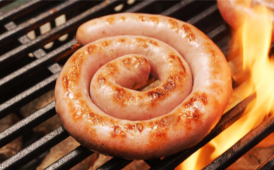 人気焼肉店がつくる、肉汁たっぷりのぐるぐるウインナー。