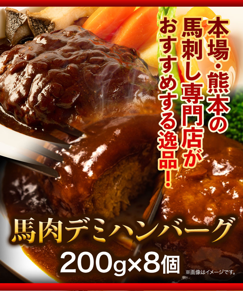 本場・熊本の馬刺し専門店がおすすめする逸品! 馬肉デミハンバーグ 200g×8個 計1.6kg 千興ファーム 馬肉 冷凍 《60日以内に出荷予定(土日祝除く)(土日祝除く)》ジューシー デミグラスソース 肉 熊本県御船町 馬肉 惣菜 お弁当 すがのや