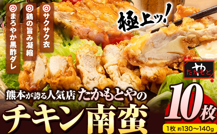 あの人気専門店のチキン南蛮!黒酢付き! たかもとや チキン南蛮 黒酢付き 10枚 1枚約130~140g 約1300g以上 約1.3kg以上 10人前《30日以内に出荷予定(土日祝除く)》ジューシー 揚げ物 肉 熊本県御船町 惣菜 お弁当 個包装 冷凍 鶏肉 黒酢ダレ