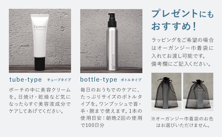 手首や首元に、やさしく寄り添う Epona 美容クリーム 選べる チューブ タイプ ボトル タイプ アオグデザイン株式会社《30日以内に出荷予定(土日祝除く)》熊本県御船町 ウマプラセンタ 保湿 Epona 美容クリーム 馬油 スキンケア 送料無料