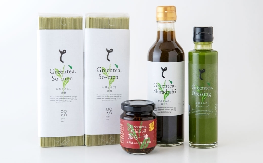 “飲む”だけでなく“食べる”ことで、お茶の新しい楽しみ方をご提案します。 オリジナルセット ( 素麺 × 2 、ラー油 、 白だし 、 ドレッシング ) 旨味 香り だし セット 出汁 お茶ドレッシング お茶まるごと白だし 茶そうめん 食べるお茶ラー油 そうめん