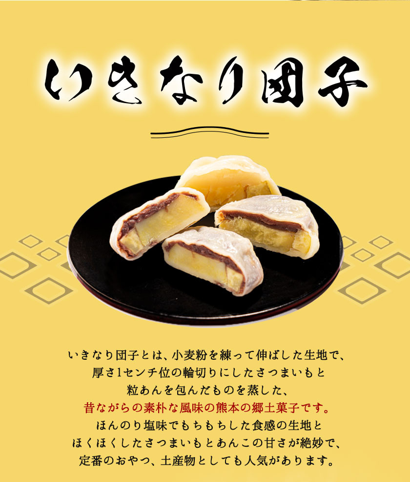 原材料:さつまいも(熊本県産または鹿児島県産)、小豆餡、小麦粉、もち米粉、砂糖、食塩、白あん