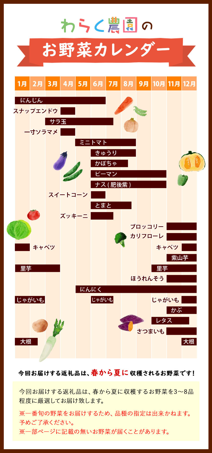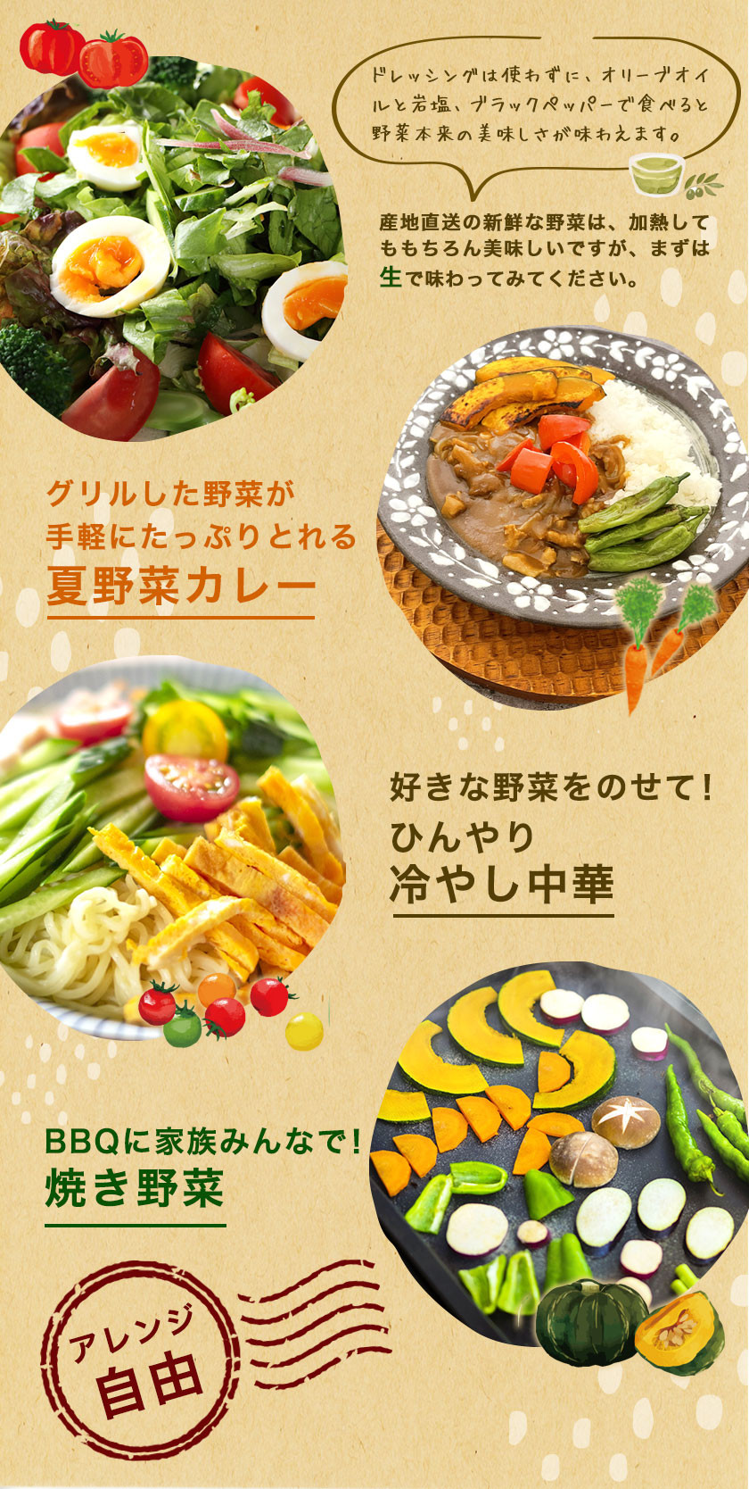 | 容量 | 季節のおまかせ『夏』野菜セット 3~8品目程度 |