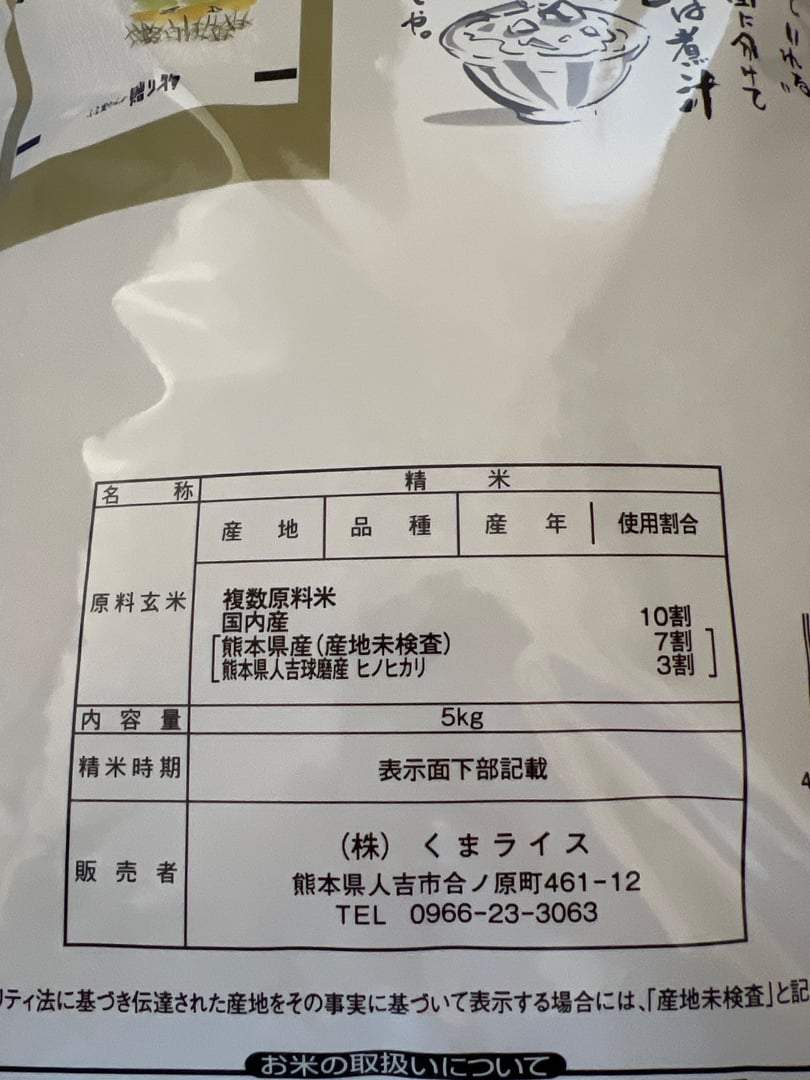 品物を選ぶ時にヒノヒカリ7割、熊本県産3割との表記がありましたが、実際に届いた品には、逆に書かれてあり、味も今いちで残念でした