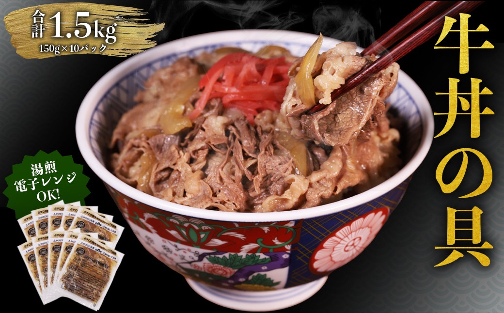 牛丼の具 合計1.5kg (150g×10パック) 牛肉 牛丼 お肉 温めるだけ 簡単調理 小分け 国産 冷凍 惣菜 おかず 熊本県 水上村