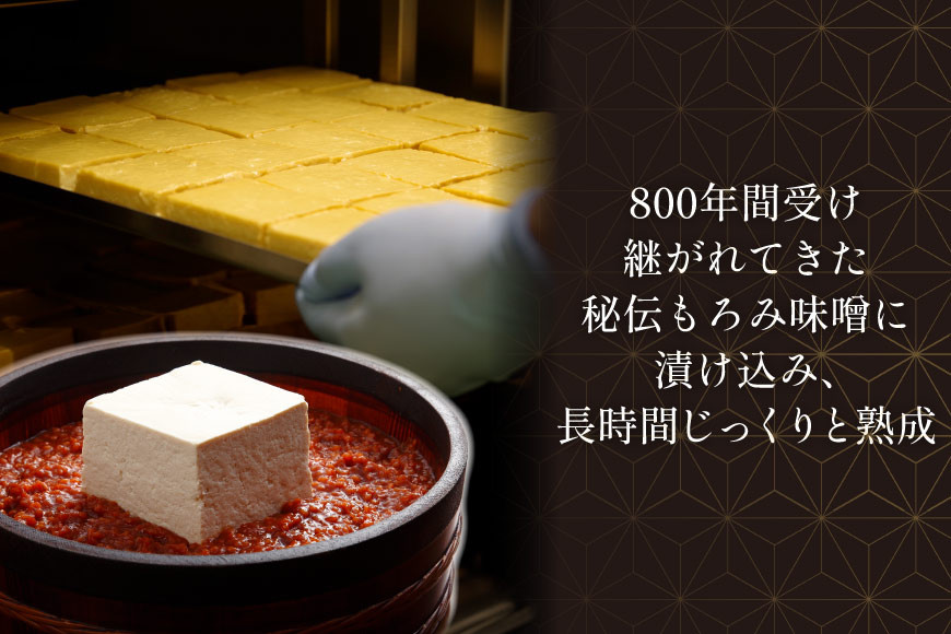 選りすぐりの九州産大豆「ふくゆたか」と五木村の清らかな天然水を使用した五木屋本舗独自の堅豆腐を秘伝もろみ味噌に漬け込みました。