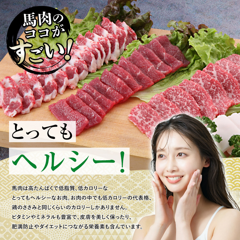 低カロリー、高たんぱくで甘みのある馬刺しです。