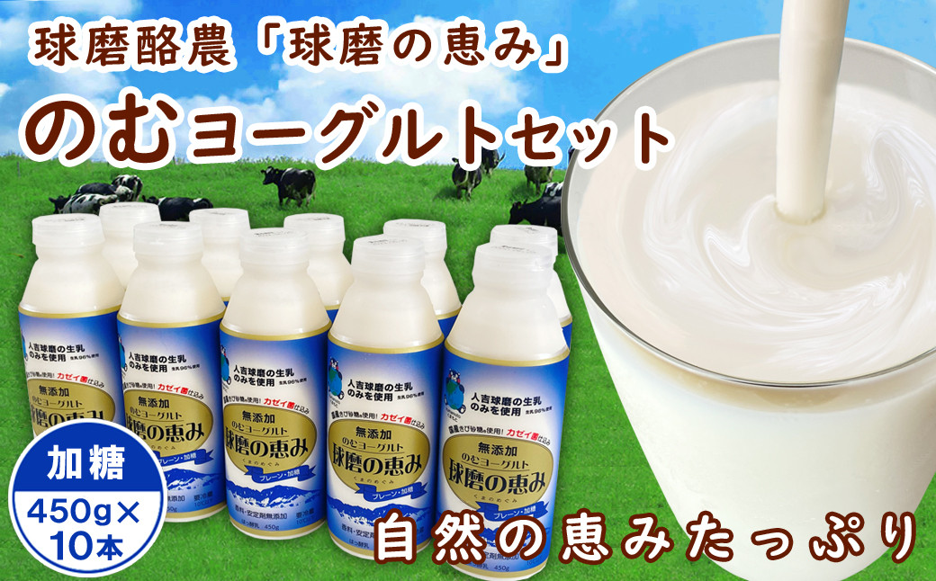 新鮮な生乳を使用した、とろ~り濃厚な「のむヨーグルト」 球磨の恵み「のむヨーグルト」加糖450g×10本セット