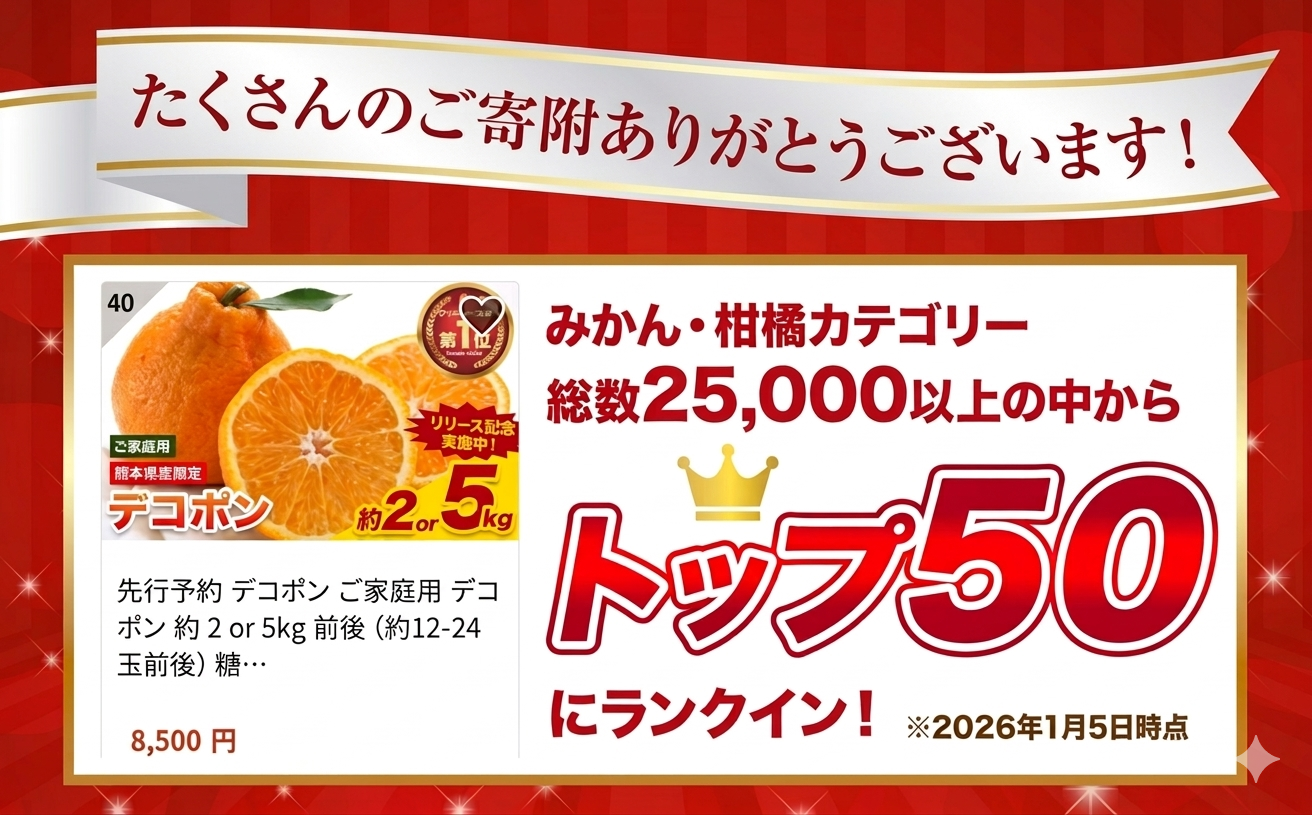 デコポンは糖度・酸度・甘味比を測定し、一定基準を満たした不知火のみが名乗れる商標です。旬に収穫されるデコポンは風味豊かで食べやすく、柑橘好きにも大人気。季節の贈り物としても選ばれやすく、味わいを楽しめる時期におすすめです。