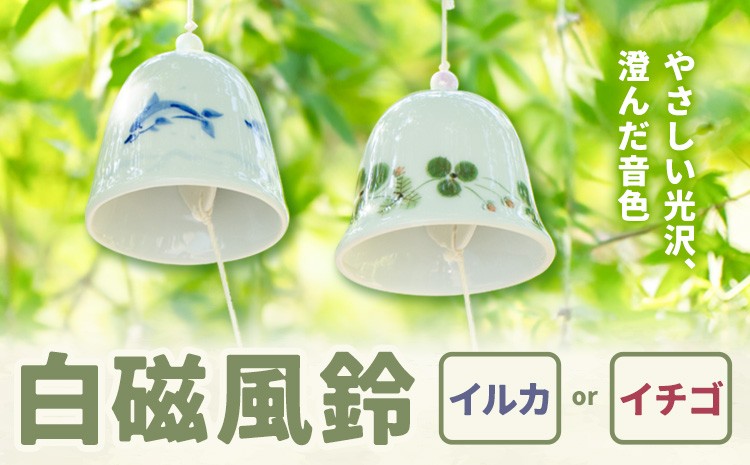 やさしい光沢、澄んだ音色を楽しむ天草白磁の風鈴です。 白磁風鈴 イチゴ イルカ 木山陶石鉱業所《60日以内に出荷予定(土日祝除く)》熊本県 苓北町 かわいい 贈答可 窯元陶器市 陶磁器展 天草陶石 手仕事 天草 苓北 熊本 お祝い プレゼント 出産祝い