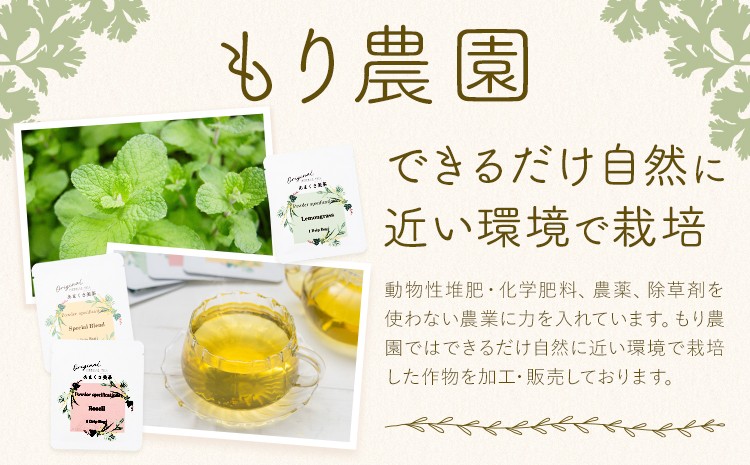 地場産品基準 告示第5条第2号に適合 適合理由:ハーブティーに使用するハーブは100%苓北町で栽培したものであり、ハーブによる重量が製品全体の100%を占めているため。