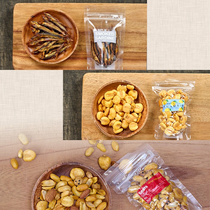 | 容量 | ・計5袋 ※下記のナッツから5袋をおまかせ(種類は重なる場合がございます。) ※簡易包装でのお届けとなります。 ※なお種類はご指定いただけません。 ・燻製ミックスナッツSnuts:60g ・燻製ミックスナッツ・スパイシー:60g ・燻製ミックスナッツ・からしマヨ:55g ・スモークド・カリー:43g ・スモーク・ジャイアントコーン・旨塩:38g ・スモーク・ジャイアントコーン・ブラックペッパー:38g ・スモークサーディン:20g (夏季限定) ・ゆず塩:43g (夏季限定) |
