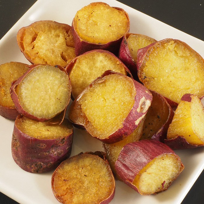 製造過程においてサツマイモ(紅はるか)と揚げ油しか使用していませんが、驚くほどの甘さとサツマイモのコクを楽しめる新感覚のスイーツです。