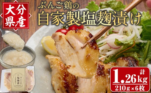大分県産 ぶんご鶏の自家製塩麹漬け(計1.26kg:210g×6枚) 国産 …