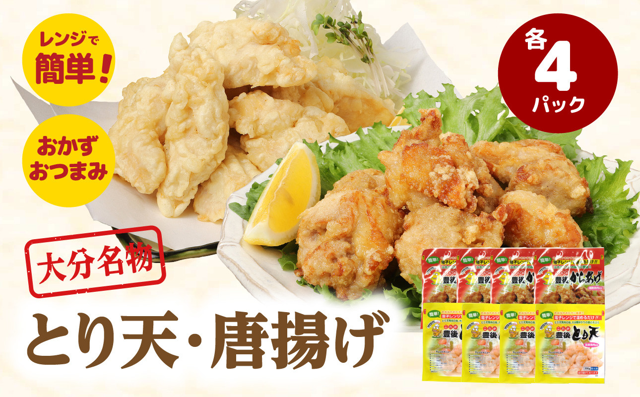 大分郷土の名物鶏料理「とり天」と「唐揚げ」が電子レンジで簡単に出来上がり 大分のとり天・唐揚げ 各4パック ムネ肉 唐揚げ とり天 郷土料理 大分名物 大分 鶏 レンジ対応 アレンジ 田舎風 A03024