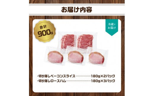 【訳あり】ロースハム・ベーコンセット(約180g×5P 計900g) ハ…