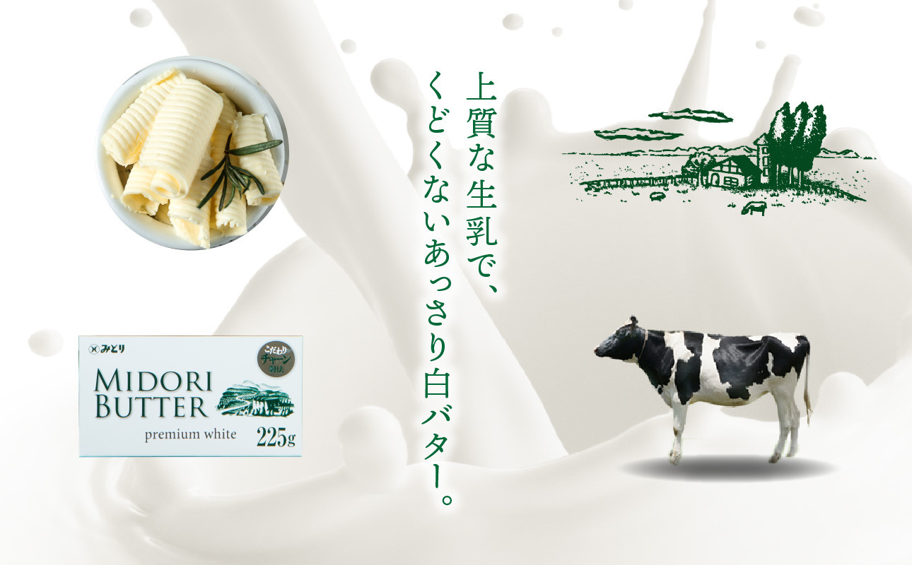 昔から親しまれているみどりブランドがお届けする、濃厚でいて口溶けなめらかな贅沢バターです。