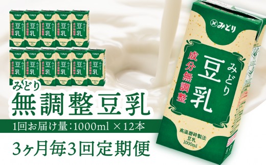 みどり豆乳(成分無調整)1000ml×12本を、合計3回お送りする定期便です!