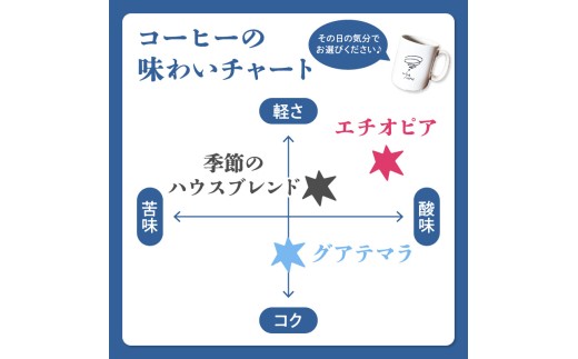 ※コーヒー豆は、生産国に変更はありませんが、生産や輸入の状況によって、農園や産地が変更される場合があります。