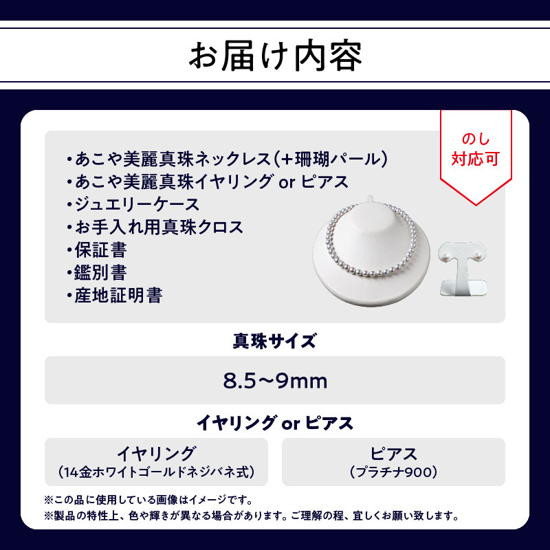 あこや美麗真珠ネックレス&イヤリング(またはピアス) 国産越…