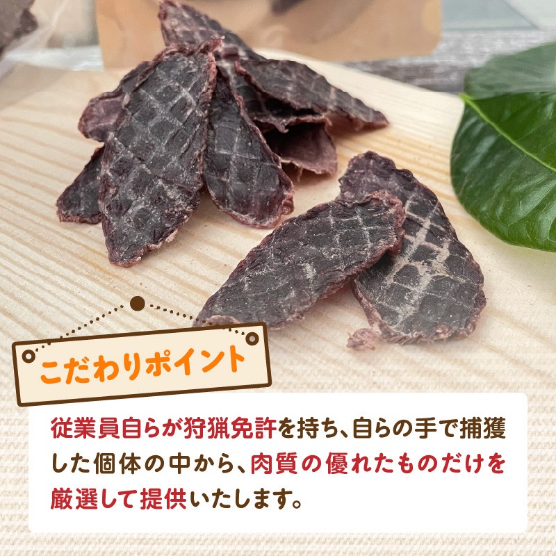 ペットの健康をサポート!安心・安全・天然鹿肉100%のペット用ジャーキーです。 【ペットフード(犬・猫用)】 鹿肉ジャーキー 50g×2パック 天然鹿肉 鹿 シカ しか 狩猟 山の幸 ジャーキー ペット 犬 ワンちゃん 猫 ネコ おやつ 国産 高たんぱく 低脂肪 健康 ヘルシー 豊後森の牡丹屋さん R15015