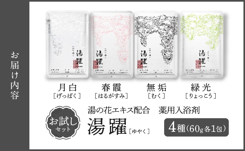 別府温泉の恵みをギュッと凝縮!毎日のお風呂で温泉気分に 【60g×4種セット】薬用入浴剤 湯躍 別府温泉湯の花エキス配合