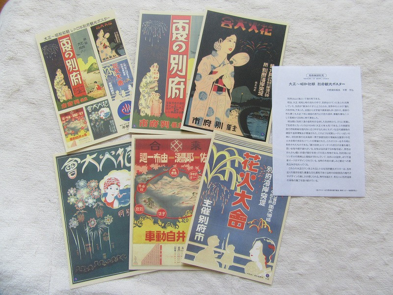 ◇別府温泉祭1春・花火大会4夏・別府温泉祭2秋・暖かい別府へ冬・中外産業博覧会・5種類ポスター+説明文