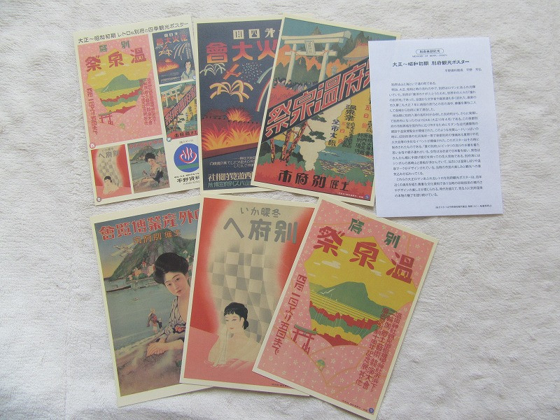 大正昭和初期レトロな別府観光ポスター、別府の四季観光ポスターを使用した絵葉書で、別府市の広報に寄与する製品
