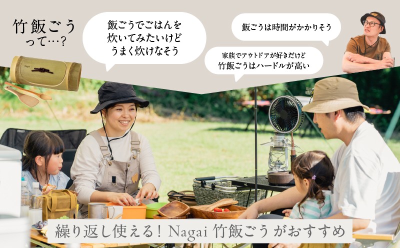 ふるさと納税 竹飯ごう セット 竹製 飯ごう しゃもじ スプーン Nagai 大分県産 孟宗竹 調理器具 職人 手作り 竹細工 キャンプ BBQ 電子レンジ レンジ調理 工芸品 竹 大分県 別府市
