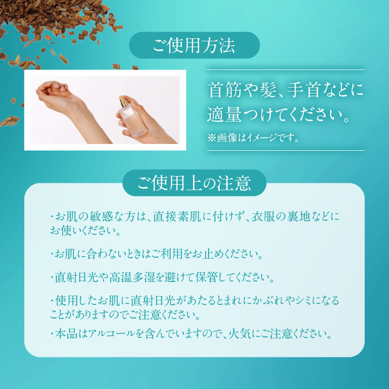 ・首筋や髪、手首などに適量つけてください。