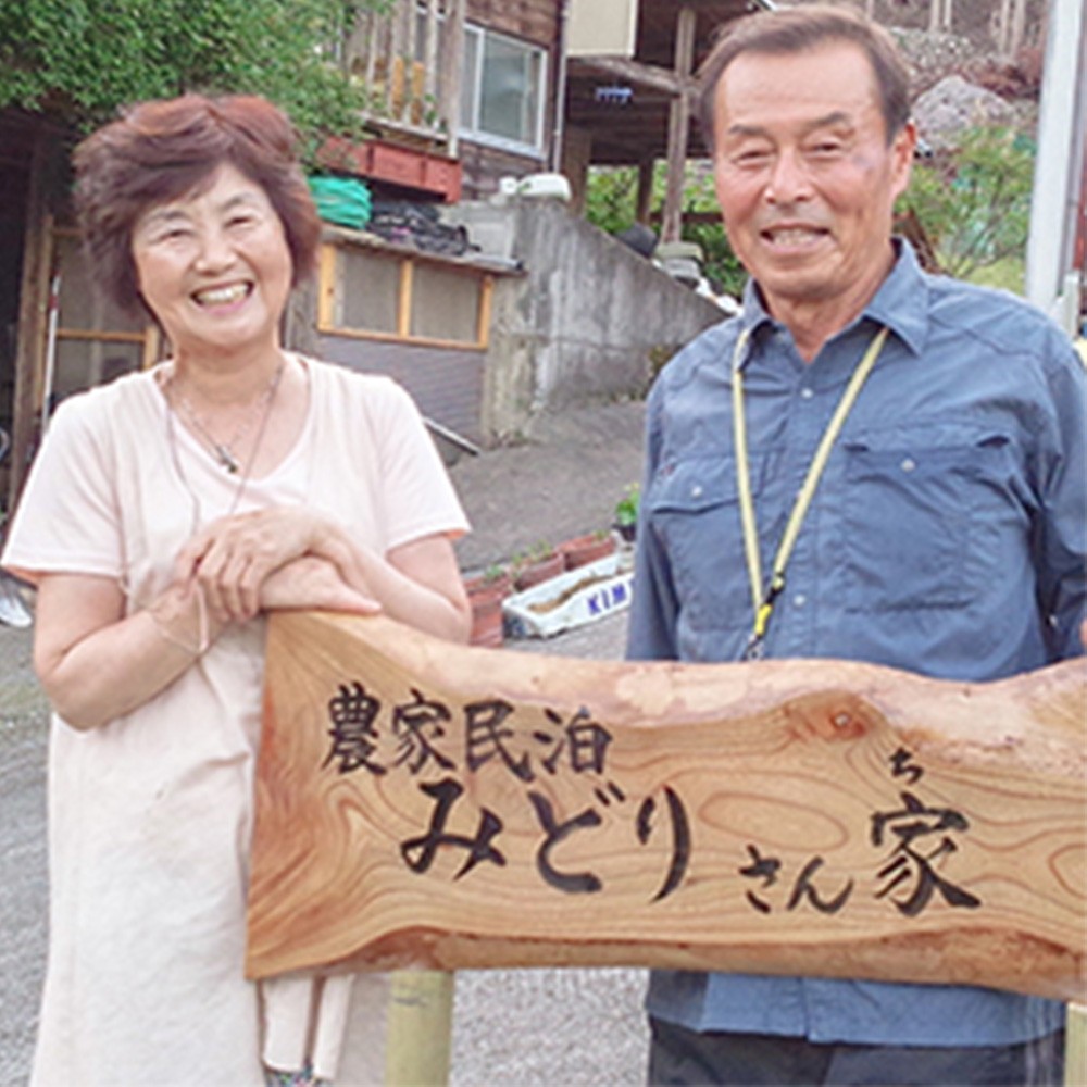 「みどりさん家」のオーナー、緑さんご夫婦がここでしか味わえない家庭料理のほか、田植えや稲刈り、椎茸の駒打ちなど、季節ごとに様々な体験でおもてなしします。