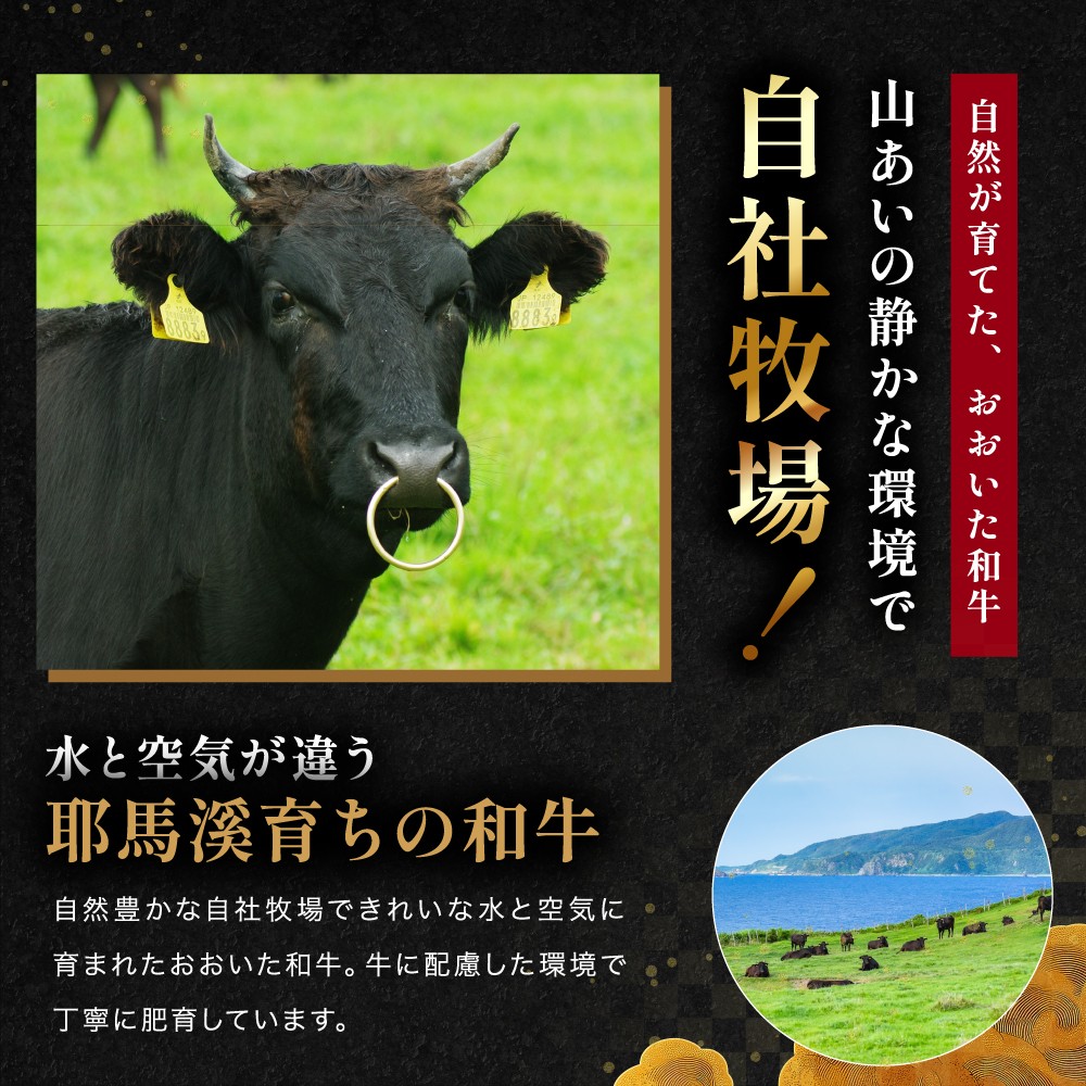 きれいな水や透き通った空気など自然豊かな中津市耶馬溪町にある、自社牧場で肥育したおおいた和牛(豊後牛)です。
