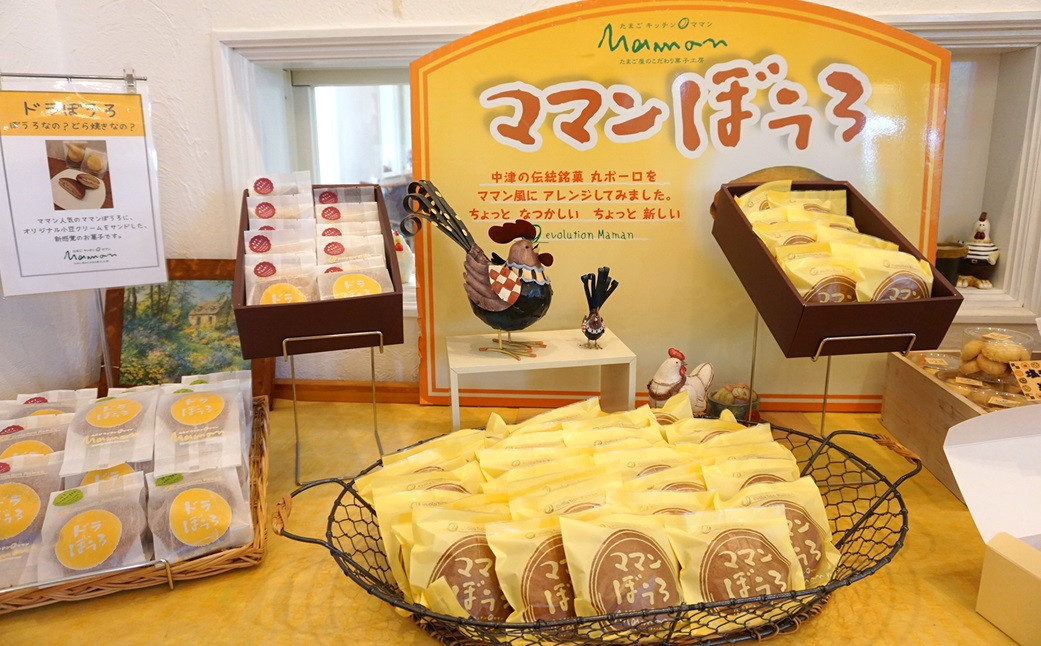 『ママンぼうろ』はたまご屋さんならではの新鮮たまごと、耶馬渓産の濃厚牛乳にアレンジを加えた、ソフトで風味の良い丸ぼうろです。