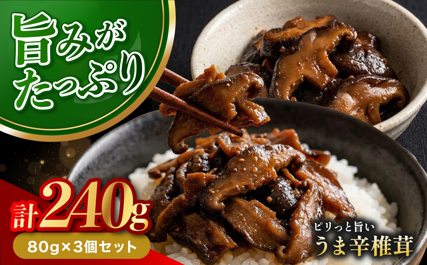 チョイスPayポイントと交換できる品 椎茸の旨味と島とうがらしの辛さを合わせた、うま辛椎茸の3個セットです。 うま辛椎茸80g×3個セット | 佃煮 詰め合わせ 飯のお供 おかず 懐かしい味 うま辛 うま辛椎茸 椎茸 シイタケ しいたけ 九州産 大分県 中津市