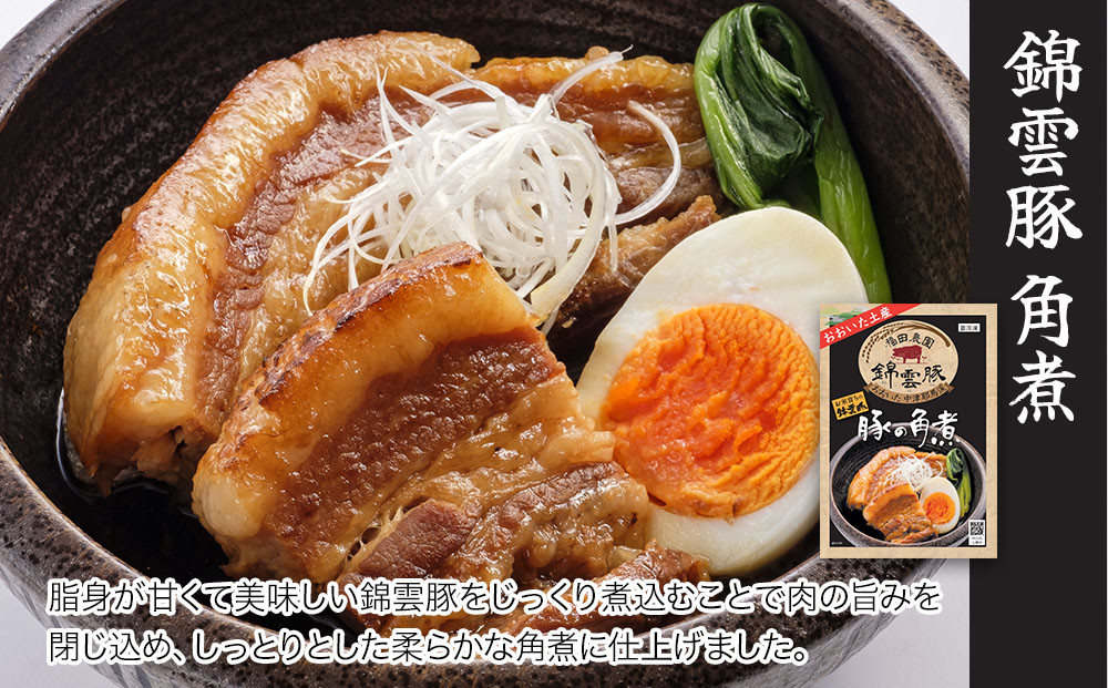 脂身が甘くて美味しい錦雲豚をじっくり煮込むことで肉の旨みを閉じ込め、しっとりとした柔らかな角煮に仕上げました。
