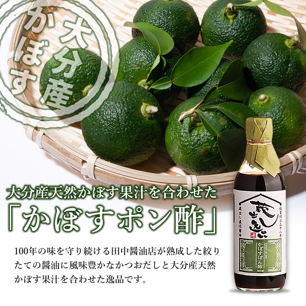 熟成した絞りたての醤油に風味豊かな かつおだしと大分産天然かぼす果汁を合わせた風味豊かな逸品。